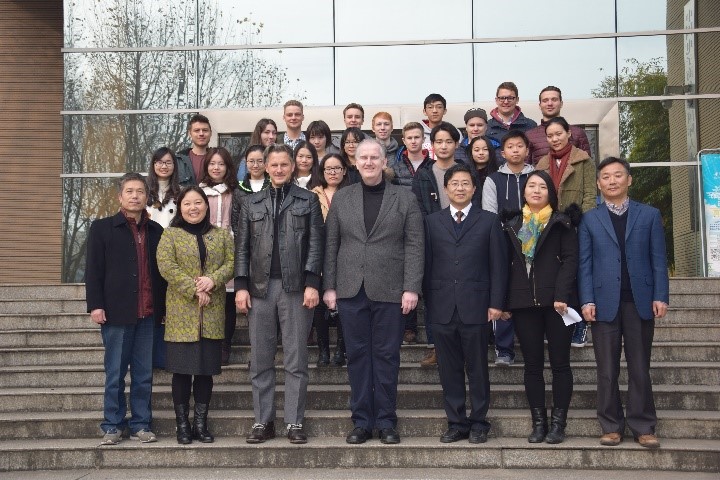德国巴登-符腾堡州双元大学曼海姆分校Harald Nitsch教授、国际交流处处长Carsten Muench、公司副经理欧阳红兵、国贸系主任范红忠、教师邱慧芳及两校20余名同学参加此次开幕式。巴西因经济危机和经费困难无法参与此次活动,中国和德国各选派10名和9名优秀员工参加。